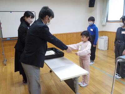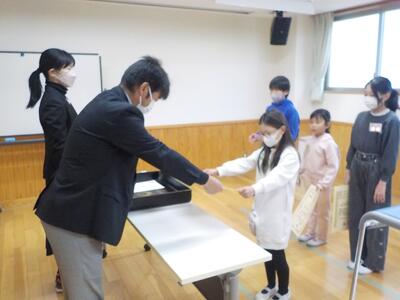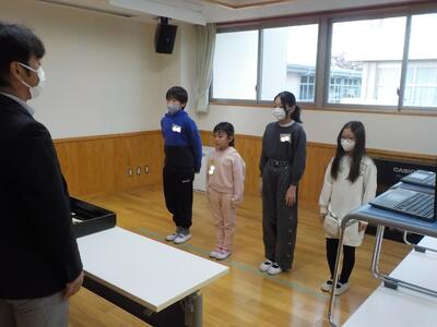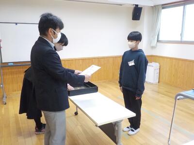 各種表彰と学校生活についての話がありました。生活委員会の児童が司会担当です。