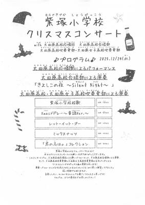 24日(水)には、大田原高校と大田原女子高校の吹奏楽部によるクリスマスコンサートが予定されています。全校生で会場の大田原高校体育館へ行きます。