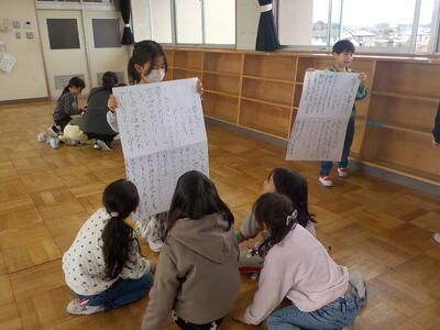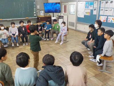 「ねずみの嫁入り」は、太陽→雲→風→壁→ねずみの話です。子供たちはワクワクしながら聞いていました。