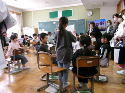 3月末の定期人事異動で本校を離任された先生方が来校し、児童とのお別れの儀式がありました。慣れ親しんだ担任だった先生や教科の先生からお別れの挨拶がありました。児童からは感謝の言葉やプレゼント贈呈がありました。