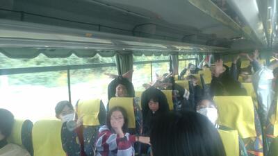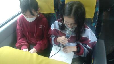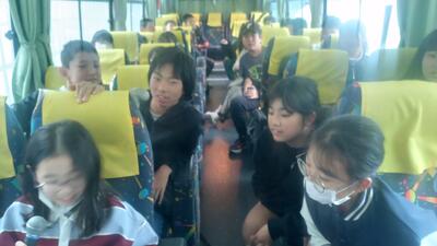 圏央道は多少混んでいますが想定内でバスは走行中です。バスの中ではレクリエーションが始まりました。班ごとにクイズ大会です。