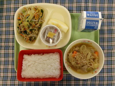 12/16(火) 投稿: HP担当 (18:09) ★ごはん・牛乳・納豆・野菜の梅カツオあえ・肉じゃが・りんご★ 「一日一個のりんごで医者いらず」ということわざを知っていますか?これは、りんごには食物繊維やビタミンが含まれており、毎日食べることで体の調子を整え、病気になりにくくなる、という意味です。 給食がんばりキャンペーンの2日目。今日も、給食委員会の児童が放送をしてくれました🍎 -