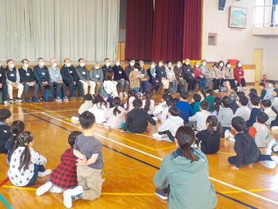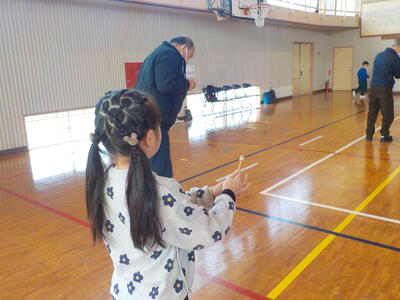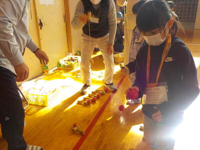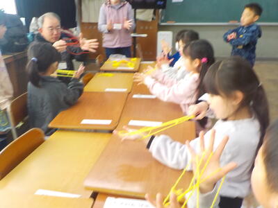 地域学校協働活動推進員さんがコーディネートしてくれたおかげで、26名の地域の方々に御協力をいただきながら盛大に「むかしのあそび交流会」を開催することができました。