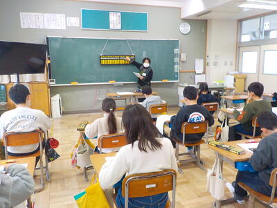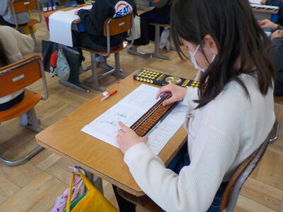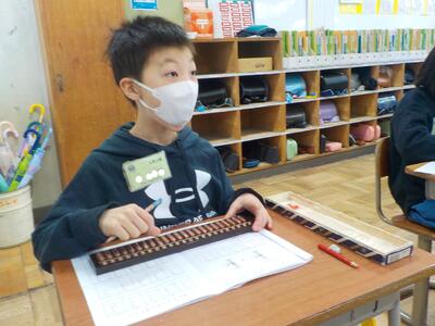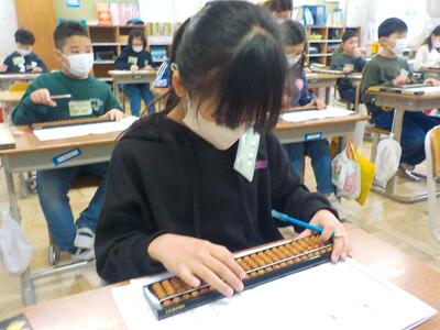 3年生 算数科 投稿: HP担当 (12:28) そろばん専門の講師の先生をお招きし、そろばん教室を開催しました。 そろばんは、古くから我が国で用いられている計算のための道具であり、数を表したり、計算したりするのに便利なものです。数を表すための位を定め、珠を操作することによって、整数や小数を表すことができます。 また、そろばんの仕組みが分かると、そうした数の加減乗除の計算をすることもできるようになりますね。 Tweet -