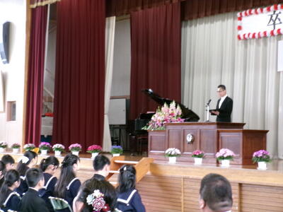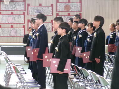 卒業式 投稿: HP担当 (14:41) 6年生の皆さん、御卒業おめでとうございます。 本校での課程を終え、54名が新たな世界へ羽ばたいていきました。これからは、変化の激しい時代と言われますが、大切なのは自分を信じ学び続ける姿勢です。失敗を恐れず、何事にも誠実に挑戦していってください。 今日まで温かく支えてくださった保護者の皆様、地域の皆様、ありがとうございました。 Tweet -