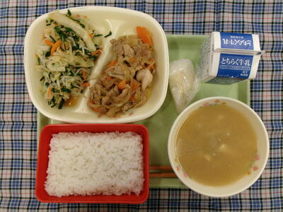 ★ごはん・牛乳・焼き肉・にらのおひたし・なめこ汁・にっこり梨★