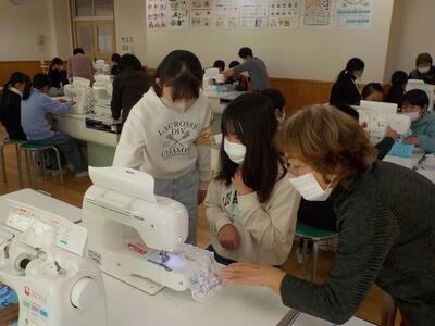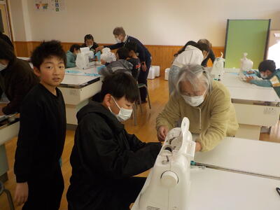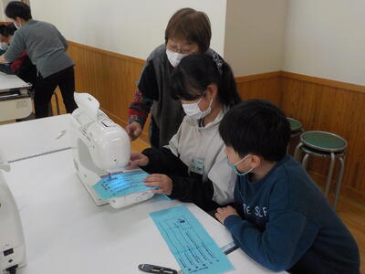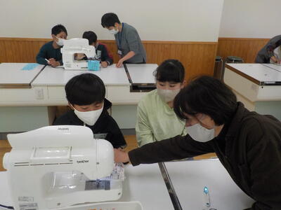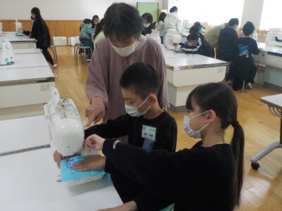 西地区公民館の手芸サークル「ポコ・ア・ポコ」の皆様にミシンボランティアとして来校いただき、個別にミシンの使い方や縫い方について教えてもらいました。ほとんどの児童が初めてミシンを使いました。
